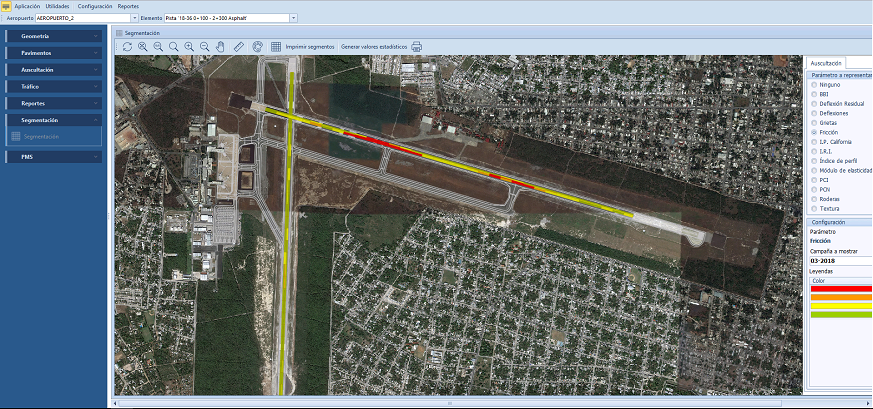 La segmentación puede establecerse y visualizarse en función del comportamiento homogéneo de la información disponible, incluyendo: sección estructural del firme, tráfico, estudio de estado, etc.