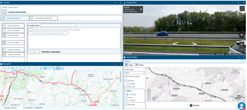 Se pueden consultar todas las medidas tomadas con equipos de alto rendimiento: valores históricos, estadísticos, etc., correspondientes a las características estructurales y funcionales del pavimento. Estos datos son accesibles a través de gráficos, histogramas, temáticas y tablas.