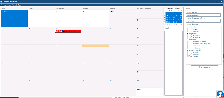 Este módulo permite gestionar los partes de trabajo e incidencias generados por los equipos de conservación, así como planificar las actuaciones a realizar. Manteniendo esta información actualizada, se podrá obtener de manera sencilla relaciones valoradas e informes que faciliten y agilicen las labores de conservación y gestión de las carreteras.